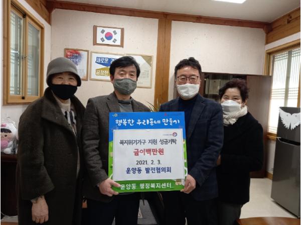 [한국연예축제일보, 유혜경기자] 설 명절을 맞아 운양동발전협의회에서는 코로나-19 장기화로 경제적 어려움에 처한 복지 위기가구를 위해 써달라며 이웃돕기 성금 이백만원을 기탁했다