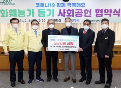 [한국연예축제일보, 유혜경기자] 창원시는 4일 오전 10시30분 시정회의실에서 창원당당한방병원과 사회공헌 협약을 체결하고, 코로나19로 어려움을 겪고 있는 관내 화훼농가 돕기에 힘을 모은다고 밝혔다.