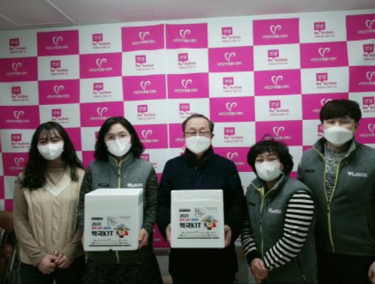 이번 설맞이 나눔키트는 충청남도자원봉사센터 주최로 충남도청 공무원들의 모금액을 활용하여 떡국 떡, 사골곰탕, 두부, 두유, 냉동만두, 유기농 과자 등으로 구성되었다.
