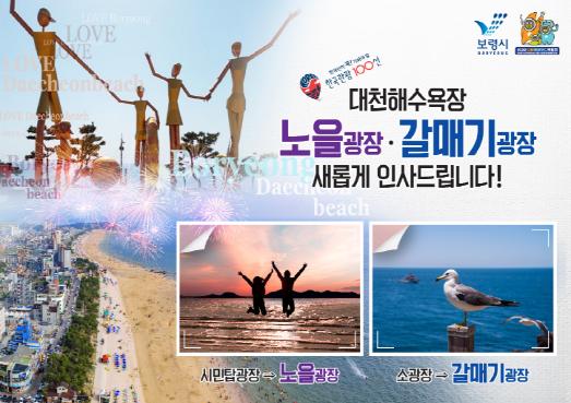 [한국연예축제일보, 유혜경기자] 보령시는 대천해수욕장의 광장 2개소의 명칭을 ‘노을광장'과 ‘갈매기광장’으로 각각 명칭을 변경했다고 밝혔다.