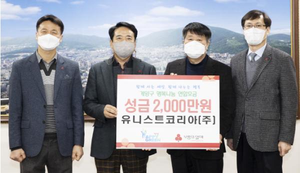 유니스트코리아㈜(대표 이만우)는 지난 4일, 코로나19로 어려움을 겪고 있는 소외계층을 위해 써달라며 이웃돕기 성금 2,000만 원을 계양구(구청장 박형우)에 기탁했다.
