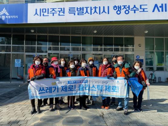이날 도담동통장협의회원, 동 관계자 등 20명은 마스크를 착용하고 조를 나눠 주민센터 주변, 주택가, 아파트 단지, 인근 학교 및 인접 도로변 주변에서 방치된 생활쓰레기를 수거했다.