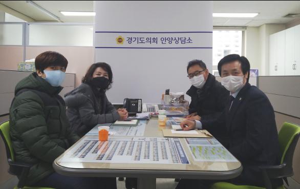 [한국연예축제일보, 변현식기자] 경기도의회 문형근 의원(더민주, 안양3)은 지난 3일 경기도의회 안양상담소에서 안양시공예가협회 설숙영 회장, 김민호 총무외 1명과 함께 안양시 공예가협회의 애로상항을 청취하는 시간을 가졌다.