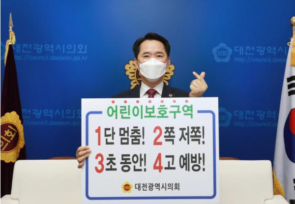 대전광역시의회 의장은 지난 28일 허태정 시장으로부터 지명 받아 “어린이 교통사고 예방을 위해 성숙한 시민의식과 함께 안전속도 지키기 등 생활속 작은 것부터 실천 하는 게 중요하다”고 강조하며 다음 주자로 대전광역시동구의회 박민자 의장, 서부경찰서 구봉지구대 정근무 팀장을 지명했다.