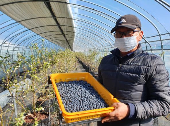 일반적으로 블루베리는 5월부터 수확이 이뤄지는데 김해에서는 시설하우스를 이용한 가온재배로 수확시기를 1월 말로 앞당겼다. 수확시기가 빨라진 만큼 농가는 높은 가격에 블루베리를 출하할 수 있다.