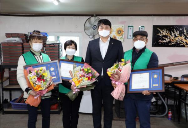 이날 수원노인봉사회 박경숙 회원, 박정순 회원, 이영순 회원 등 3명은 남다른 봉사정신으로 사랑의 반찬 나눔을 통한 이웃사랑 실천에 앞장서 지역사회 발전에 기여한 공로를 인정받아 수원시의회 의장 표창을 수상했다.