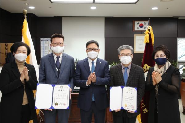 성동구의회(의장 이성수)는 지난 4일 최민수 교수, 박현근 변호사를 구의회 입법·법률 고문으로 신임 위촉하고 위촉장을 수여했다고 밝혔다.