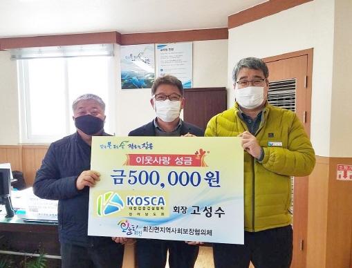 회진면 지역사회보장협의체 김형채·강현갑 공동 위원장은 “어려운 경제 환경 속에서도 도움이 필요한 이웃들을 위해 성금을 기탁해 주신 고성수 회장님께 감사드린다”며 “기탁해 주신 성금은 꼭 필요한 곳에 소중히 사용하겠다”고 전했다.