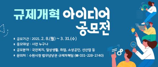 [한국연예축제일보, 유혜경기자] 수원시가 8일부터 3월 31일까지 ‘2021 수원시 규제개혁 아이디어 공모전’을 연다.