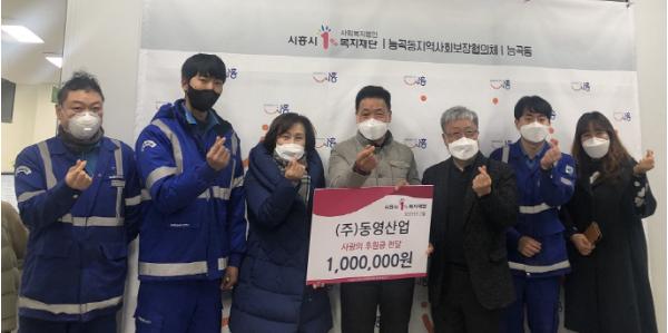 ㈜동영산업은 생활폐기물 수거 전문업체로 직원들이 관내 소외계층을 위해 자체적으로 성금을 모금했으며, 매년 시흥시에 꾸준히 성금과 재능기부 나눔을 실천하고 있는 등 따뜻한 마을 만들기에 앞장서서 훈훈함을 전하고 있다.