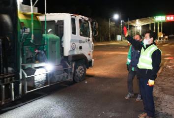 설 명절을 앞둔 5일 새벽, 허태정 대전시장은 유성구 관평동 일원에서 대전도시공사 환경미화원과 함께 생활폐기물을 수거한 후 관계자를 격려했다.