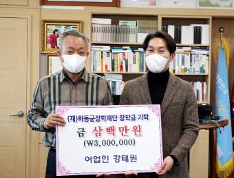 (재)하동군장학재단(이사장 이양호)은 하동읍에 사는 강태원 씨가 지난 3일 군수 집무실을 찾아 장학기금 300만원을 기탁했다고 5일 밝혔다.