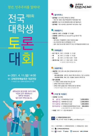 일정 및 대회 진행방법은 신종 코로나바이러스 감염증 확산 추이에 따라 변경될 수 있다. 토론대회에 대한 자세한 문의는 4·19혁명국민문화제위원회사무국으로 하면 된다.