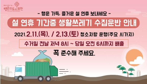 [한국연예축제일보, 유혜경기자] 포천시는 오는 16일까지 쓰레기 특별관리 중점기간으로 정하고 ‘설 연휴 쓰레기 관리 종합대책’을 추진한다.