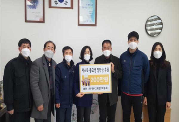 [한국연예축제일보, 유혜경기자] 원주시는 단구FC에서 2월 4일 단구동 행정복지센터를 찾아 관내 저소득 학생을 위해 장학금 200만 원을 후원했다고 밝혔다.