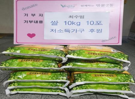 [한국연예축제일보, 유혜경기자] 원주시는 퇴직 공무원인 최수범 씨가 2월 4일 명륜2동 행정복지센터에 취약계층을 위한 쌀(10kg) 10포를 전달했다고 밝혔다.