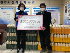 지난 3일 진주 무궁화라이온스클럽은 정미혜 회장과 진주시장애인체육회 김재규 상임부회장이 참석한 가운데 300만 원 상당의 한우곰탕을 지정 기탁했다.