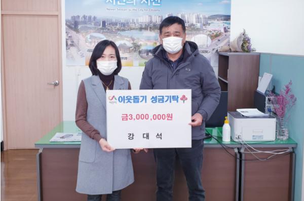 [한국연예축제일보, 유혜경기자] 서산시 부춘동에 거주하는 강대석씨가 설 명절을 앞두고 어려운 이웃돕기 성금 300만원을 기탁했다.