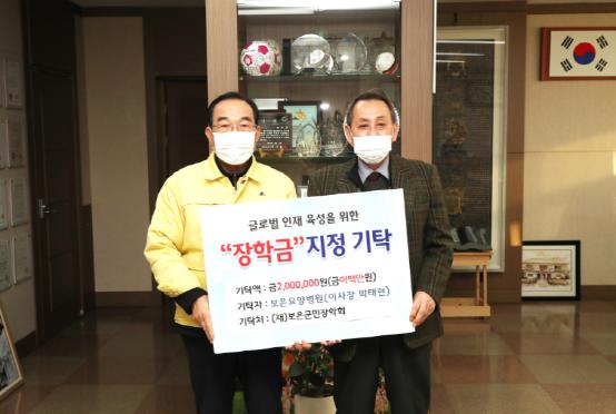 한편 지난 3일 보은요양병원(이사장 박태현)도 군청을 방문해 글로벌인재육성에 써달라며 장학금 200만원을 기탁했다.