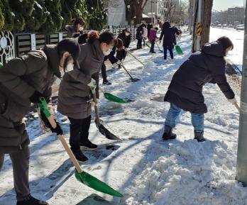 또한 매탄4동 통장협의회는 주민들의 통행이 많은 동수원로 인도를 중심으로 제설작업에 나서 얼어붙은 눈을 순식간에 제거하는 매탄4동 산드래미 제설부대의 저력을 보여주었다.