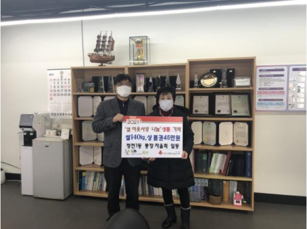 [한국연예축제일보, 유혜경기자] 인천광역시 부평구 청천1동 행정복지센터는 5일 동 통장자율회와 청천새마을금고로부터 설 이웃사랑 쌀과 온누리상품권을 기탁 받았다.