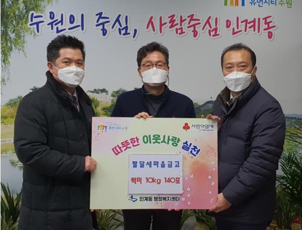 김광수 인계동장은 “매년 잊지 않고 기부 해 주시는 팔달새마을금고에 감사를 드리며, 잘 전달하여 소외되는 이웃이 없는 훈훈한 설 명절이 되도록 하겠다”고 전했다.