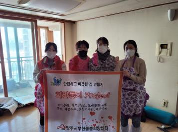 이날은 홍미영 회천2동장, 오희교 회천범양아파트 통장, 무한돌봄희망센터 직원이 참여해 가운데 대상 가구 내 방치됐던 옷가지, 이불, 음식쓰레기 등 생활쓰레기를 정리하는 등 주거환경을 개선했다.