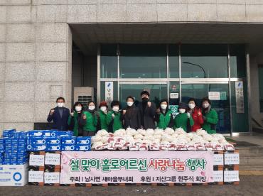 이날 부녀회 회원들은 조미김 세트, 고기 1kg, 떡국떡 1kg, 마스크 30장을 대상가정에 전하고 직접 안부를 챙겼다.