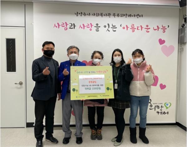 [한국연예축제일보, 유혜경기자] 국제로타리 3600지구 광릉클럽이 5일 설 명절을 앞두고 코로나19로 어려움을 겪는 학생들의 학업을 지원하기 위해 진접오남행정복지센터를 찾아 격려금 220만원을 전달했다.