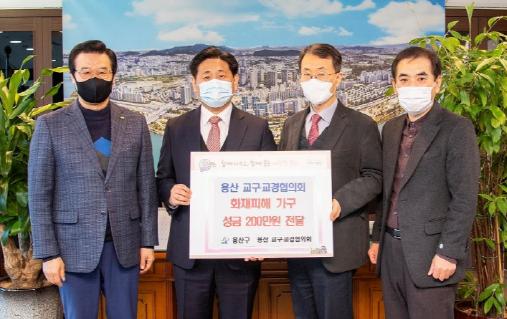 지난달 28일 용산구 신창동에서 발생한 화재피해 가구를 돕기 위해서다. 화재로 인해 주민 2명이 중환자실에 입원했다는 소식을 접한 이들 단체는 각각 100만원씩을 마련, 구에 전달했다.