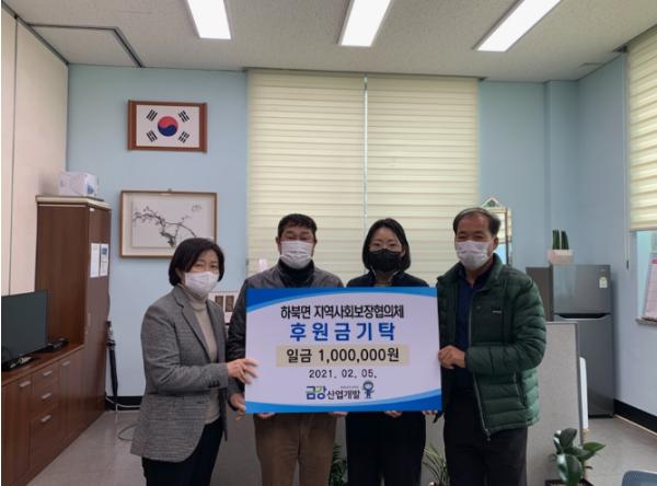 ㈜금강산업개발(대표 이일선)은 5일 하북면행정복지센터를 방문해 어려운 이웃을 위해 써 달라며 하북면 지역사회보장협의체에 성금 100만원을 기탁했다.