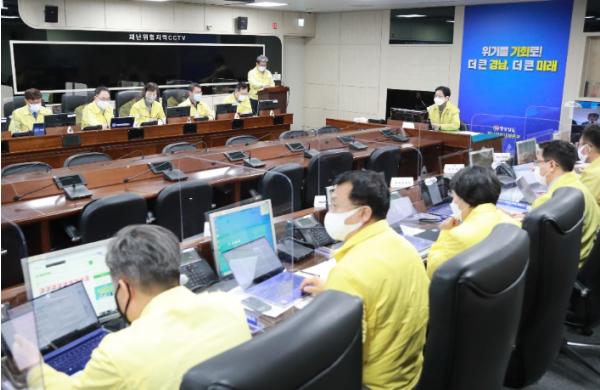이날 회의는 연장된 사회적거리두기 조치에 따라 지난 달과 마찬가지로 서부청사와 각 출자출연기관 등 7곳으로 분산해 영상회의로 진행됐다.