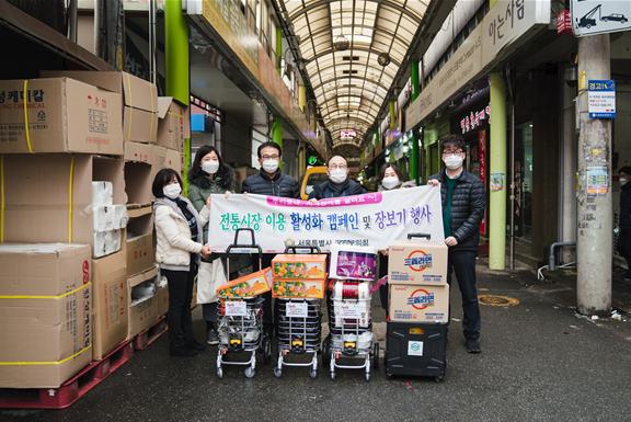 의원들은 코로나19 확산을 방지하고자 이틀에 거쳐 4개 전통시장(능동시장, 자양골목시장, 중곡제일곡목시장, 노룬산골목시장)과 5개 복지 시설을 분산 방문했다.