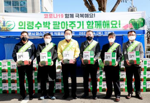 코로나19 방역수칙으로 유흥주점, 식당 등의 영업제한과 사회적 거리두기에 따른 소비위축이 수박 소비감소로 이어져 겨울철 수박가격이 급락하였다. 겨울철 수박은 예년 1동(660㎡)기준으로 300~400만 원 정도였으나, 지난 1월말 기준 130~170만 원 정도로 예년의 절반 이하로 크게 하락 하였으며, 2월 들어 다소 회복하였으나 예년에 미치지 못하고 있다. 이에 어려움을 겪고 있는 수박농가에 조금이나마 힘이 되고자 백삼종 의령군수 권한대행 및 문봉도 의령군의회 의장, NH농협 의령군지부 등 관내 유관기관 직원들이 수박 팔아주기 운동에 동참하였다.