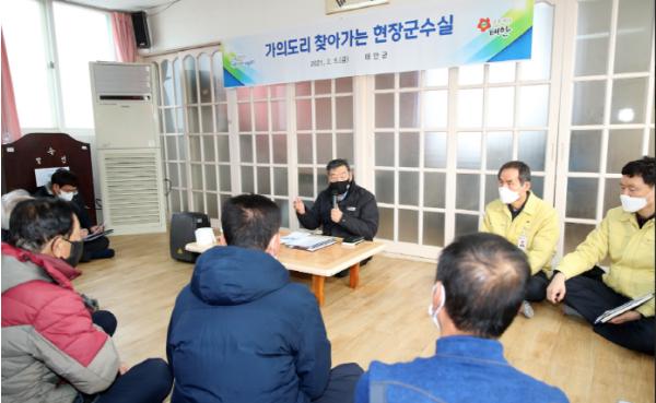 군에 따르면, 지난 5일 근흥면 가의도리 마을회관에서 가세로 태안군수를 비롯한 군 관계자, 가의도리 주민 등이 모인 가운데 ‘찾아가는 현장군수실’이 열렸다.