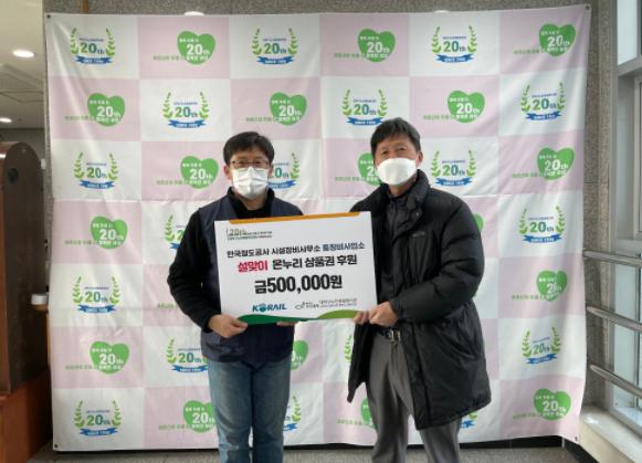 한국철도공사 시설장비사무소 장비중정비사업소는 매년 명절마다 지속적으로 온누리상품권을 후원 하여 도움이 필요한 어르신에게 연속적으로 도움이 이루어 질 수 있도록 사회공헌활동을 진행 해 오고 있다. 장비중정비사업소 이상국소장은 “코로나19가 장기화 되면서 어려움 또한 지속되고 있기에 더욱더 지원을 이어나가야 한다고 생각했다.”.“어르신들이 외롭지 않은 명절을 보내시길 바란다고 밝혔다.