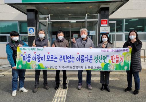 한편, 성산면 지역사회보장협의체는 2015년 7월 ‘지역사회보장협의체로 하나되는 공동체 마을’을 비전으로 삼고 발족한 이래 ‘다 함께 덩실덩실 사업, 좋은 이웃 정 나눔 사업’을 대표사업으로 복지 사각지대 발굴과 지역민을 위한 다양한 복지사업을 시행해오고 있다.