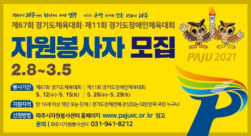 [한국연예축제일보, 유혜경기자] 파주시가 ‘2021년 경기도종합체육대회’ 자원봉사자를 모집한다.