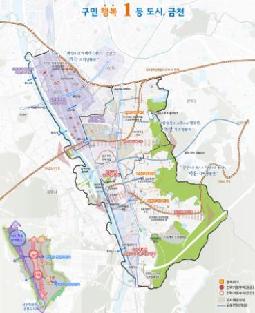 계획안은 ‘구민 행복 1등 도시 금천’이라는 비전아래 △지역 간 균형발전 △직주근접 자족도시 실현 △사통팔달 교통인프라 구축 △문화복지 10분 동네 실현 △주민소통 도시재생 △사람중심 스마트라이프 등을 전략목표로 설정하고 있다.
