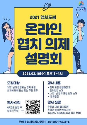 지역사회 혁신계획 사업으로 협치 의제에 관한 이해를 높이고 포럼 참여를 확산하기 위해 마련한 이번 설명회는 비대면으로 유튜브 채널 ‘협치도봉’에서 실시간 진행한다.