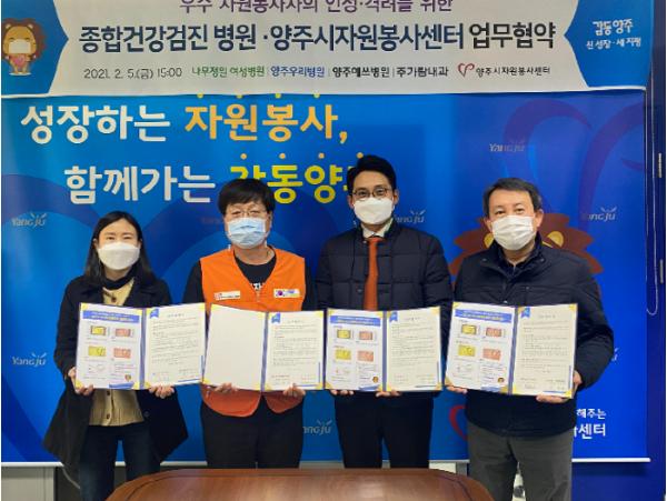 [한국연예축제일보, 유혜경기자] 양주시자원봉사센터는 지난 5일 관내 의료기관과 우수 자원봉사자의 복지 증진을 위한 업무협약을 체결했다.
