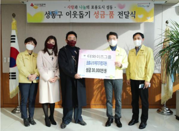 [한국연예축제일보, 유혜경기자] 서울 성동구는 이달 5일 더와이즈그룹에서 설을 맞아 성동구 이웃돕기 성금으로 3천만원을 기부했다고 밝혔다.