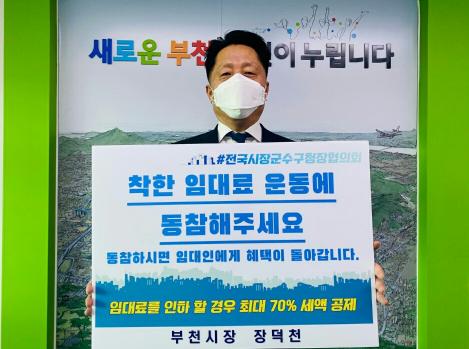 [한국연예축제일보, 유혜경기자] 장덕천 부천시장이 코로나19 장기화로 경제적 어려움을 겪고 있는 임차인을 위해 ‘착한 임대료 확산 챌린지’에 동참했다.