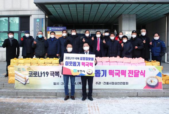[한국연예축제일보, 유혜경기자] 부천시와 부천시전통시장상인연합회는 설 명절을 앞둔 지난 4일 시청 앞에서 사랑의 떡국 떡 전달 행사를 가졌다.