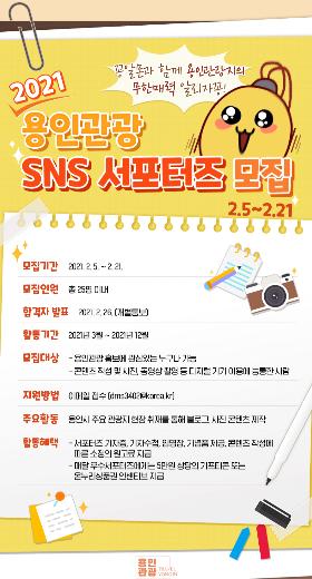 [한국연예축제일보, 유혜경기자] 용인시는 지난 5일부터 21일까지 SNS?블로그를 통해 관내 관광지와 축제 등을 홍보할 용인 관광 SNS 서포터즈 25명을 모집한다고 밝혔다.