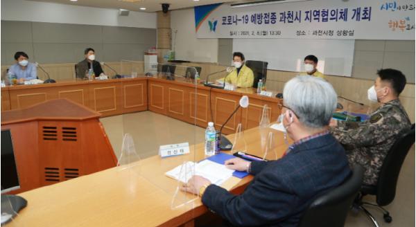 [한국연예축제일보, 유혜경기자] 과천시는 2월 중 시행 예정인 코로나19 예방접종을 안전하고 원활하게 진행하기 위해 민·관·군 간의 업무협력 체계를 위한 지역협의체를 구성하고 8일 시청 상황실에서 회의를 개최했다.