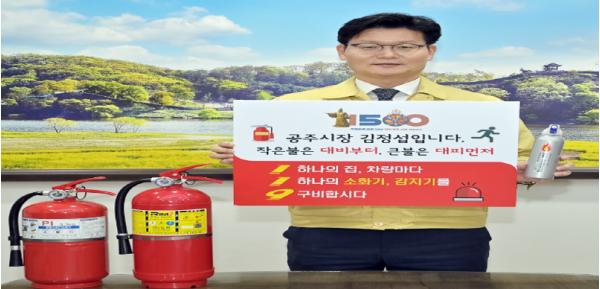 [한국연예축제일보, 유혜경기자] 김정섭 공주시장은 8일 소화기와 화재감지기 등 소방시설의 중요성을 알리는 ‘119 릴레이 챌린지’에 동참했다.