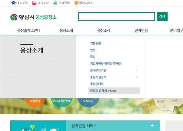 그동안 책자로 발간된 「농청 공동체의 뿌리」, 「웅상의 발자취」, 「웅상의 발자취 화보집」등 웅상 지역의 역사·문화를 한 눈에 볼 수 있도록 제작한 도서들을 시 홈페이지에 e-book으로 게재하여 시민들이 더 쉽게 접근할 수 있도록 하였다.
