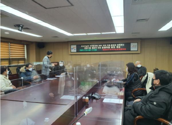 이날 회의는 코로나19 확산방지를 위해 지속가능발전협의회 전대인 주민대표, 오민 운영위원장, 박병록, 홍정희, 홍상철, 김성희, 강경환 분과위원장 등 최소 인원만 참석하고, 나머지 회원은 ZOOM 어플을 활용해 비대면 방식으로 참여한 가운데 이뤄졌다.