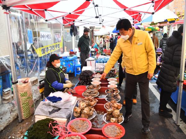이 자리에서 박 구청장은 제수용품 등 설 물가를 점검하며, 코로나19로 인한 경기침체로 어려움을 겪고 있는 전통시장 상인들의 목소리를 듣고 격려했다.
